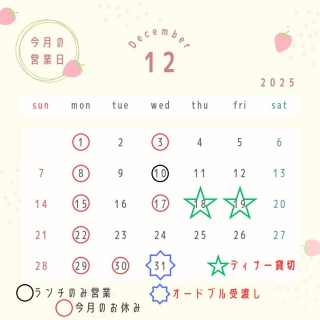 12月営業日&定休日のお知らせ🎄