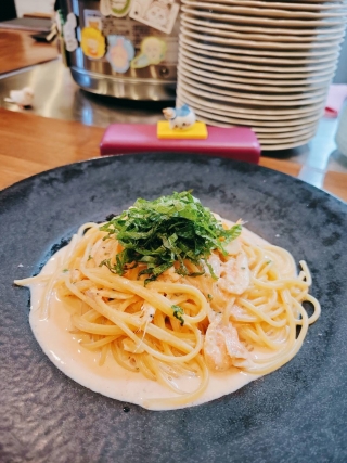 白海老と大葉の明太子クリームソース