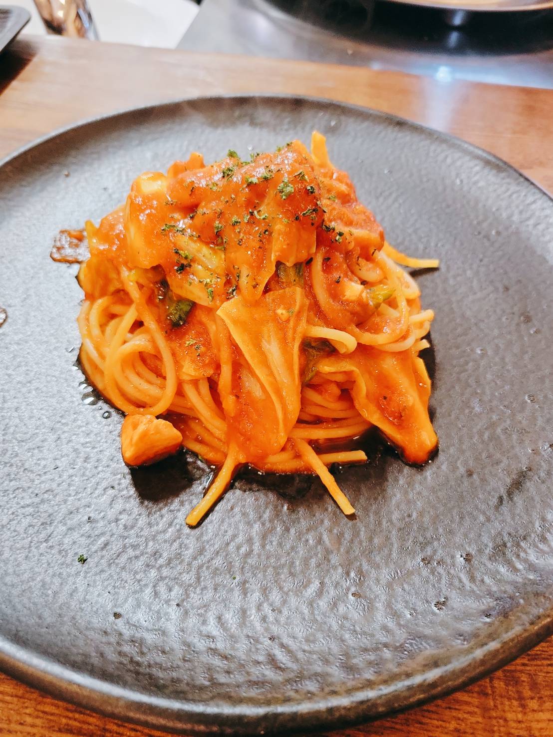 サーモンと春キャベツのトマトソース