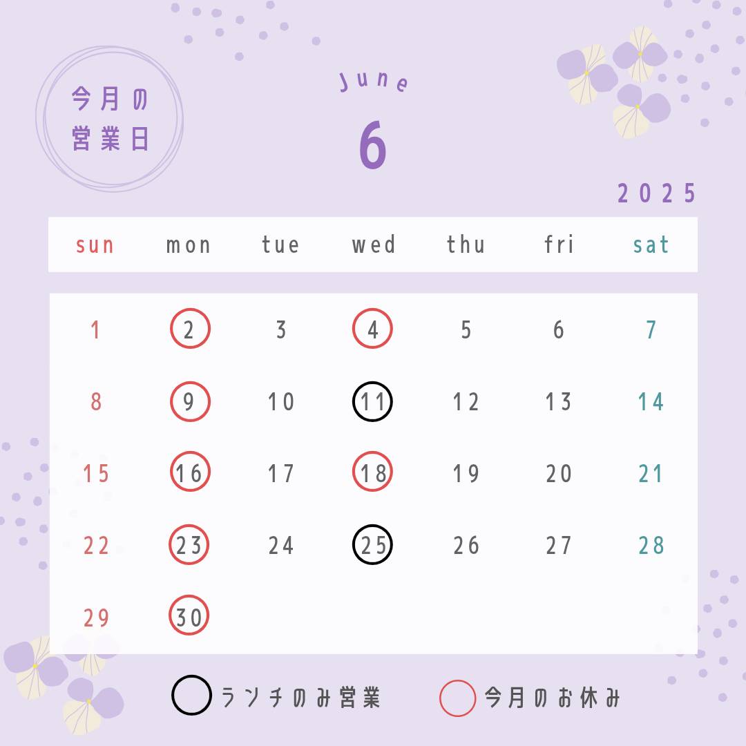 6月の営業日&定休日のお知らせ🍑 [2025/06/02]