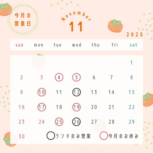 11月営業日&定休日のお知らせ🙇♂️ [2025/11/01]