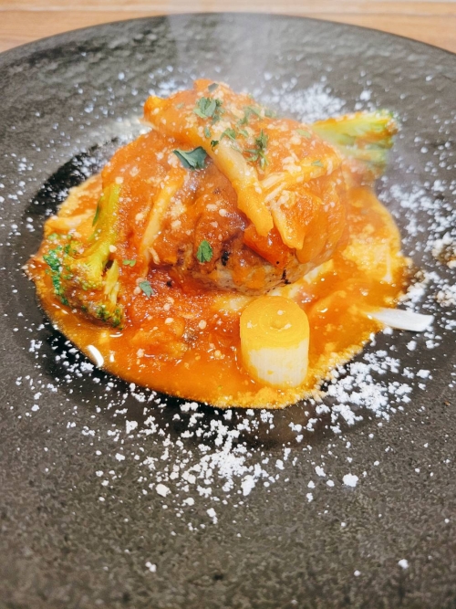 ビーフ100%ハンバーグ 野菜とチーズのトマトソース