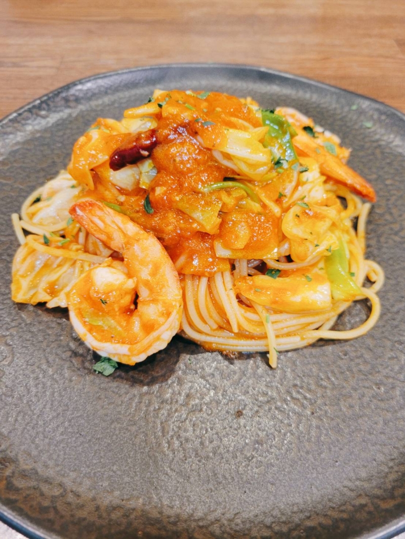 海老とキャベツのトマトソース