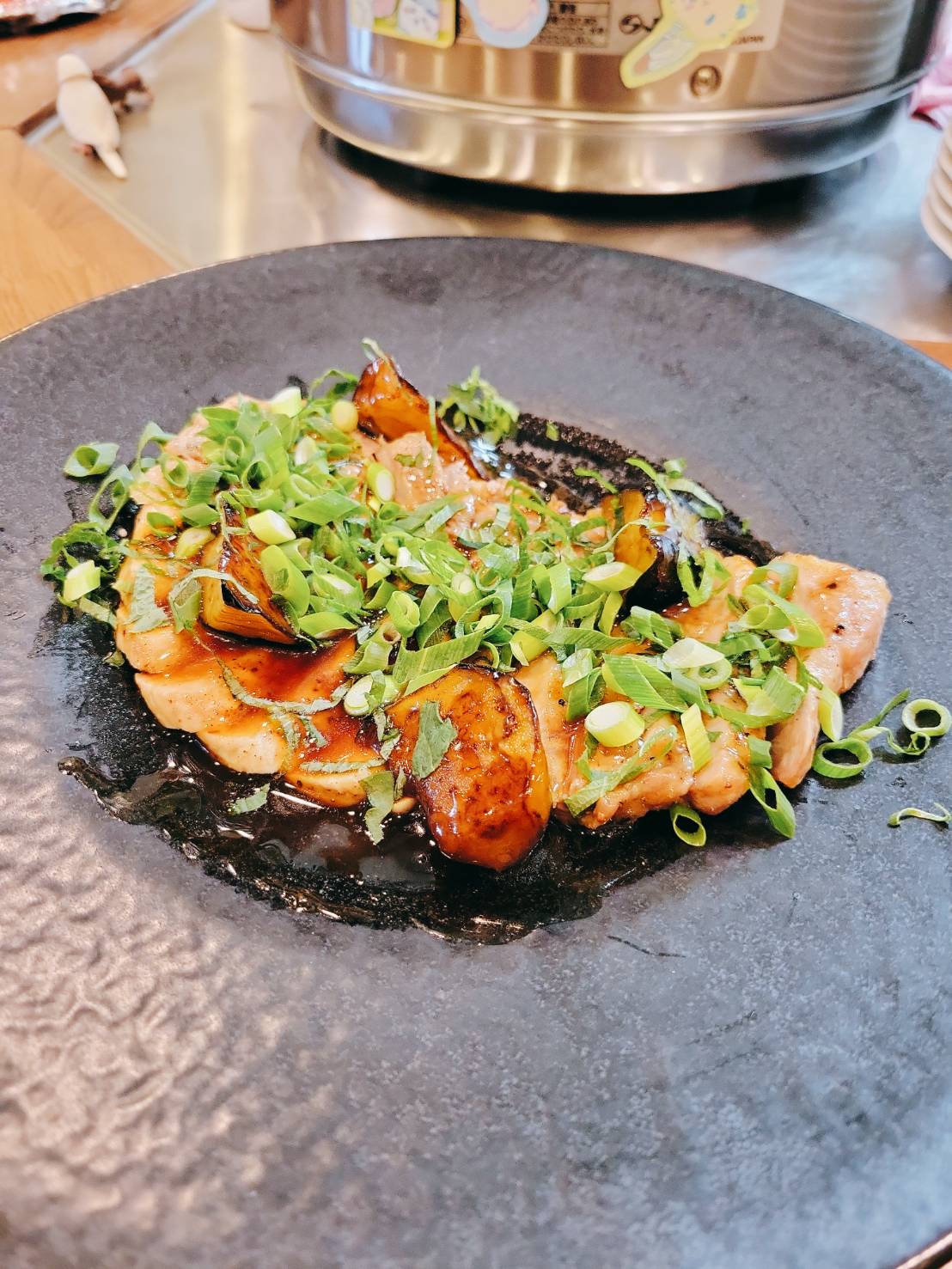 もち豚のグリル 茄子と葱の和風ソース