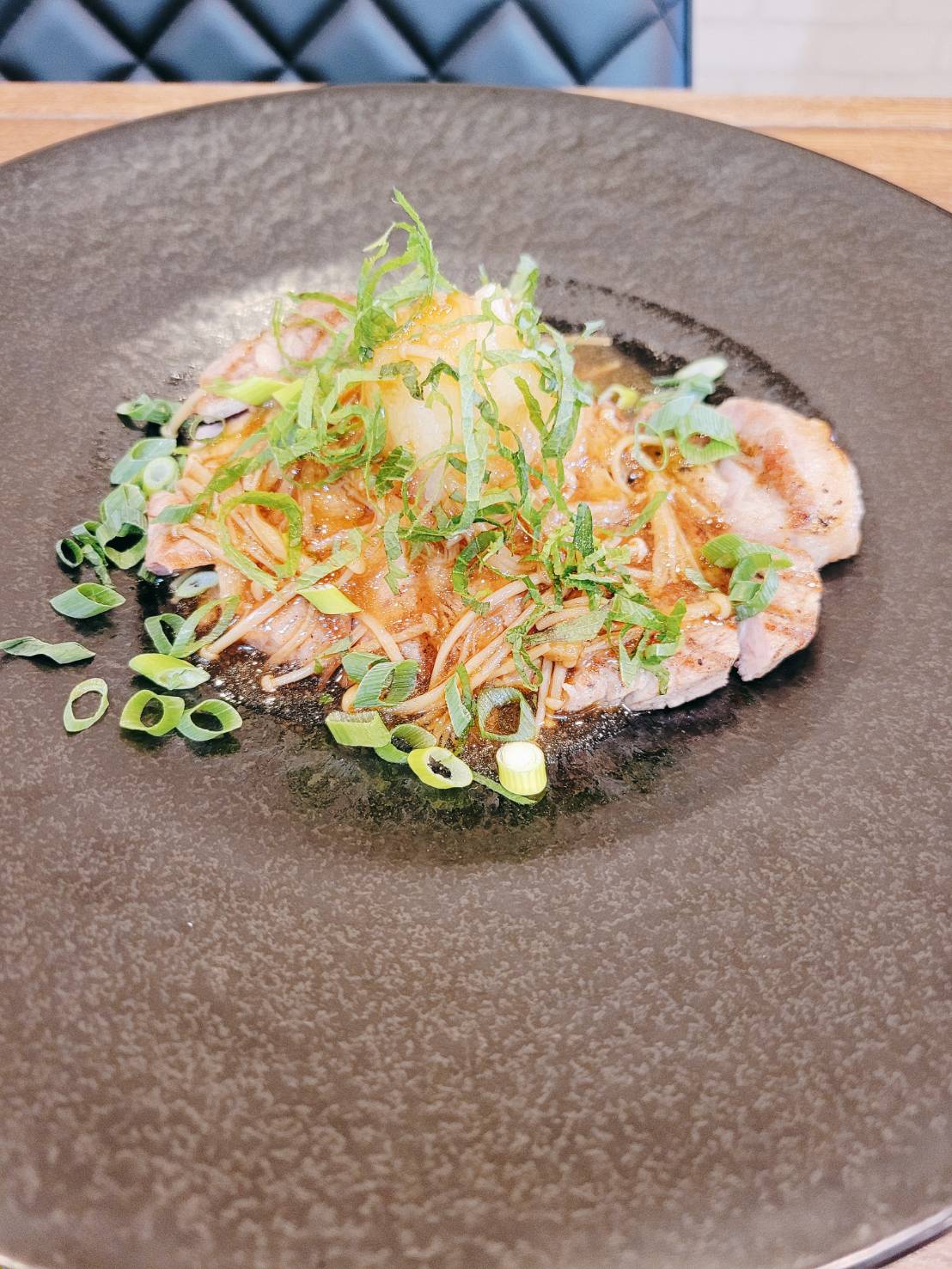 もち豚のグリル えのき茸と大葉の和風おろしソース