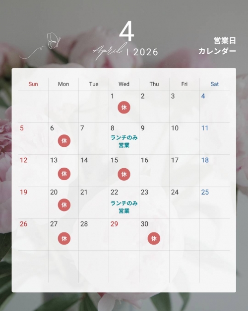 4月営業日&定休日のお知らせ🙇♂️ [2026/04/03]